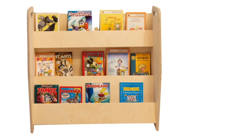 Βιβλιοθήκη σχεδιασμένη με τέτοιο τρόπο ώστε το παιδί να μπορεί να χρησιμοποιεί πλήρως τα έπιπλα.