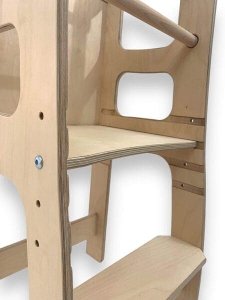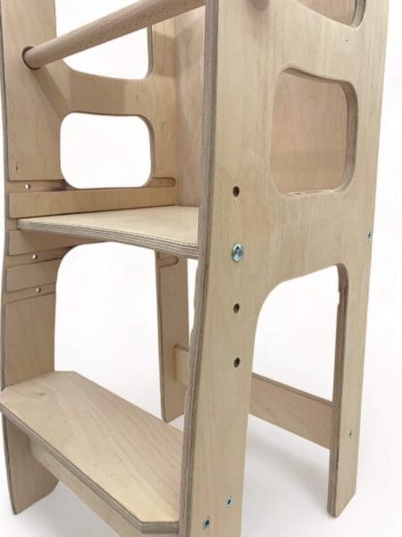 πύργος με διαβάθμιση ύψους και μαυροπίνακα WoodenGoods είναι ένας πολύ καλός τρόπος για να διδάξετε στα παιδιά σας την ανεξαρτησία και την ευθύνη, καθώς επίσης την έκφραση της δημιουργικότητας στον μαυροπίνακα ενώ διασκεδάζετε περνώντας χρόνο μαζί. Ένας βοηθητικός πύργος / σκαμνί φέρνει ένα παιδί στο κατάλληλο ύψος για να εργαστεί στον πάγκο της κουζίνας. Τα παιδιά λατρεύουν να μαγειρεύουν, να ψήνουν, να πλένουν πιάτα, να βουρτσίζουν τα δόντια και να πλένουν τα χέρια τους μόνα τους. Αυτός ο στιβαρός σχεδιασμός προσφέρει καλή σταθερότητα και μπορεί εύκολα να μετατραπεί σε καρέκλα φαγητού για να απολαύσετε γεύματα, να σχεδιάσετε ή να παίξετε.