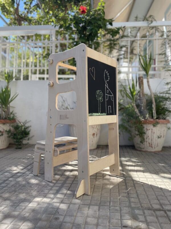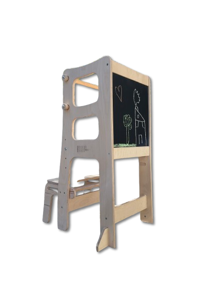 Πύργος με διαβάθμιση ύψους – εκμάθησης και μαυροπίνακα, Φυσικό ξύλο Montessori.
