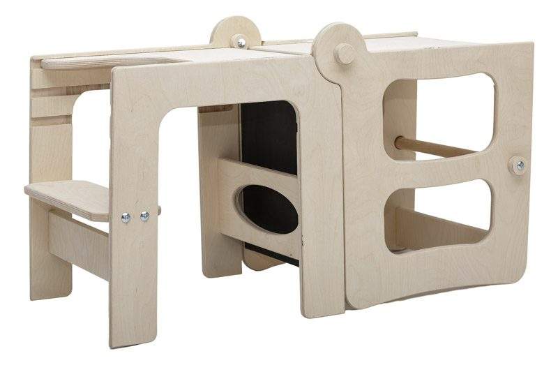Πολυμορφικός Πύργος εκμάθησης Montessori, τραπέζι και καρέκλα σε ένα με μαυροπίνακα και διαβάθμιση ύψους
