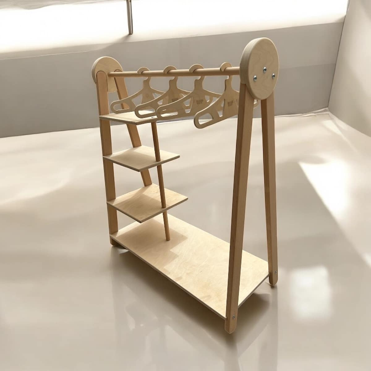 Κατασκευασμένη από κόντρα πλακέ σημύδας και οξιά Ρουμανιας υψηλής ποιότητας, η κρεμάστρα ρούχων για το μωρό είναι φιλική προς το περιβάλλον και ασφαλής για το μικρό σας. Η απλή ξύλινη σχάρα παιδικών ρούχων είναι ένα τέλειο εργαλείο για γονείς που αναζητούν τρόπους για να προωθήσουν την αυτοανεξαρτησία στα παιδιά. Επιπλέον, το ράφι θα γίνει ο προσωπικός σας βοηθός όταν έρθει η ώρα να αρχίσετε να ενθαρρύνετε το παιδί να (ξε)ντυθεί.