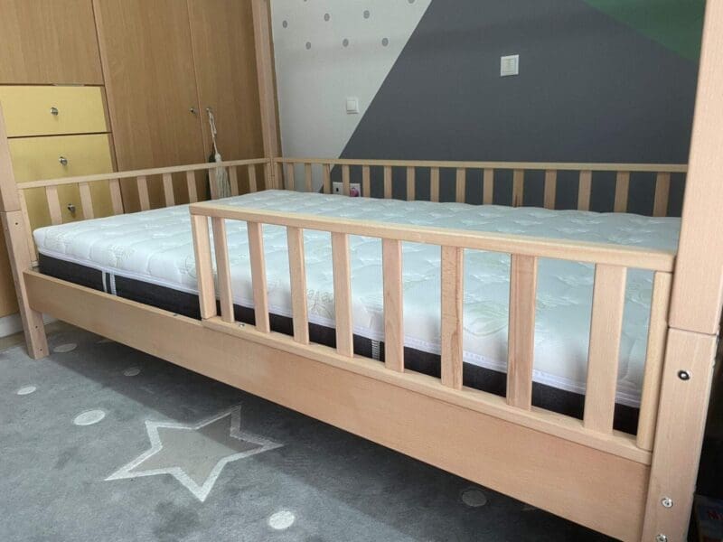 Γι’ αυτούς τους λόγους σχεδιάζαμε και κατασκευάσαμε ένα πολυμορφικό κρεβάτι Μοντεσσόρι από μασίφ οξιά.Το ξύλο οξιάς είναι ένα ανθεκτικό προϊόν που προσδίδει ζεστασιά και αναδεικνύει την φυσικότητα του ξύλου στον χώρο για χρόνια!