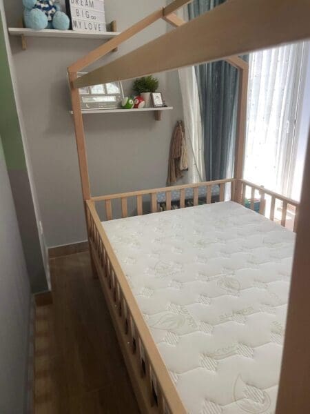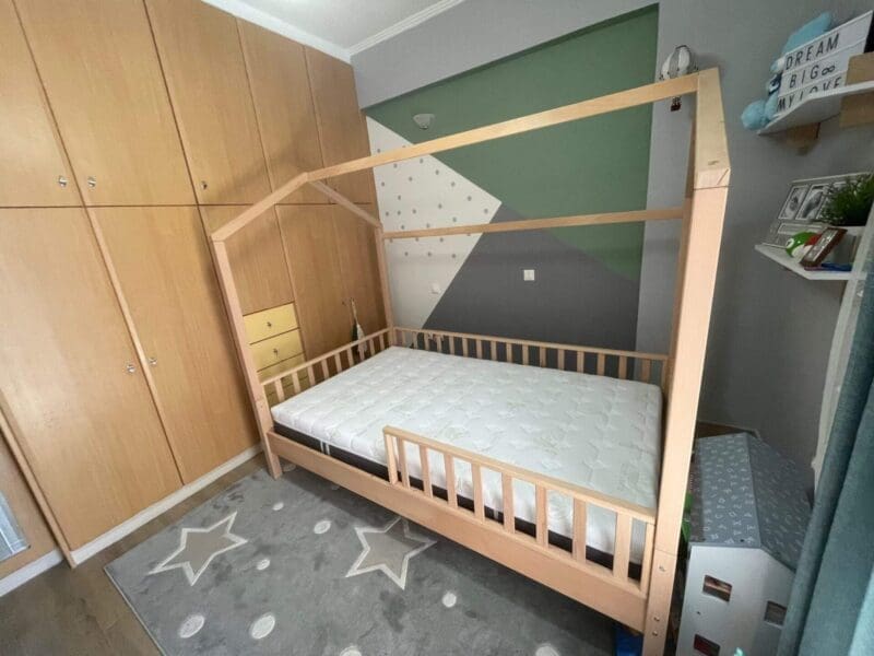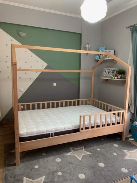 Από ένα μονό Μοντεσσόρι κρεβάτι, μπορεί να γίνει κουκέτα με 2 κρεβάτια, απλό άνω κρεβάτι ή και με γραφείο από κάτω! Ουσιαστικά θέλαμε ένα κρεβάτι που να μεγαλώνει μαζί με το παιδί.